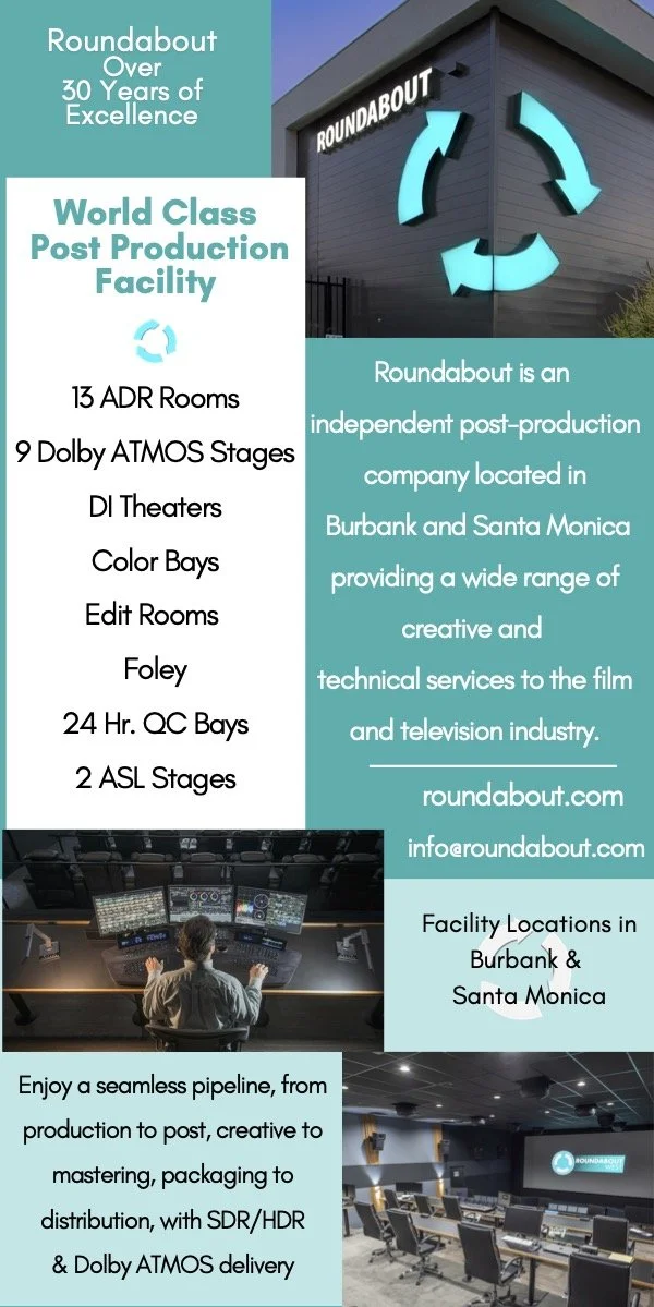 Roundabout’s Post Production facilities in Burbank and Santa Monica prime locations offer filmmakers end-to-end services in all aspects of post. Roundabout sets the bar high, demanding outstanding delivery to our clients and has seen unprecedented growth, with a record-breaking success. Roundabout is changing the way content is created, distributed and shared.